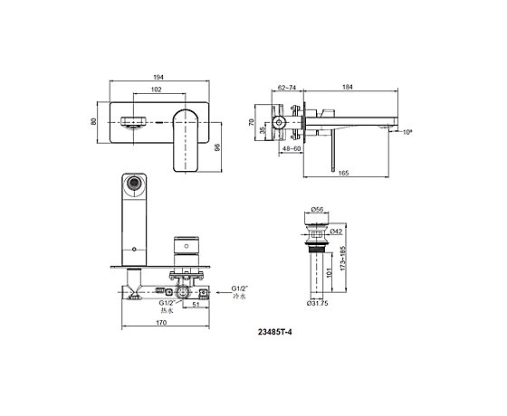 若方单把墙出水脸盆龙头_不含阀芯(出水嘴长165mm)