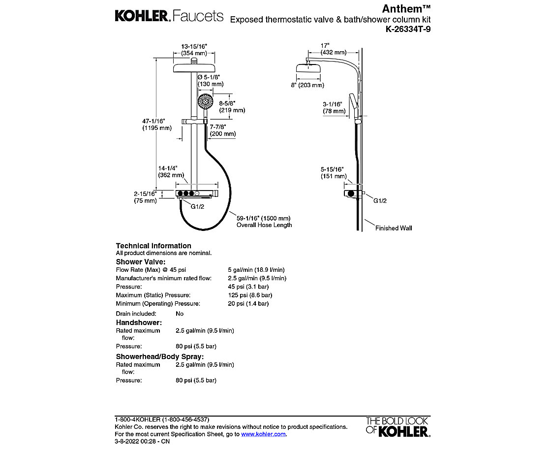 水乐章恒温三出水淋浴柱 – 双功能头顶花洒