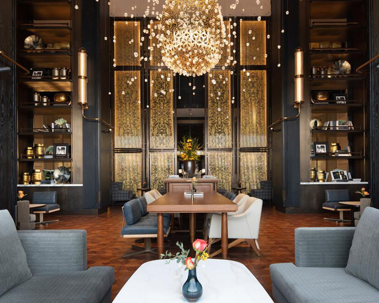 掩映在苍翠紫金山麓下的南京苏宁钟山国际高尔夫酒店,经知名酒店设计公司CCD之手将东方传统美学的浓郁怀旧气息与当代设计美学巧妙融合,以崭新的设计手法延续六朝古都的独特韵味。从概念创意到效果图、工艺、选材和施工甚至到后摆场,CCD创始人郑忠先生都亲自参与,细节处无不诠释:存在即。步入酒店,黑与金色调的华丽搭配,随处可见的中国传统元素,彰显着金陵浓郁深厚的历史气韵。大堂酒廊则以图书馆为设计灵感,采用大块面的构成手法,融入上世纪30年代装饰艺术风格,营造古韵雅致的人文气息;大气沉稳的紫金阁中餐厅以精致屏风打造空间上的层次感和仪式感,尽显东方意境的秩序之美;酒店客房延续了公共空间的黑与金色调,配以复古装饰细节,勾勒出府邸式的典雅居住氛围,设计师以匠心巧思将自然景观与雅致宁静的室内空间相融,推窗远眺,高尔夫球场如画卷般尽收眼底,将思绪从都市繁嚣中暂时抽离,沉浸当下。